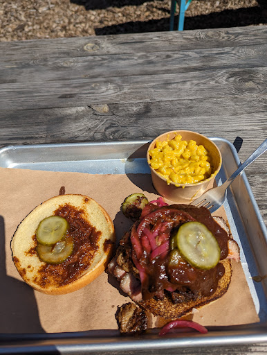 Read moreWhat a great Texas Barbecue place. Cheap and cheerful premises with disposable plates and cutlery. Parking for about 8 large cars on site, and a few motorcycles can squeeze in also. It was fairly busy, but the speed of service (almost instant) and the turnover of customers in and out was quick enough that i didn't see anyone disappointed for a seat at a table with their friends or family. Easy access for a wheel chair through the open double barn door, but a very high lintel of about 15cm on the small entrance door to the left. The food was good without exception, and very tasty. The only reason for one star less was the slightly confusing menu, and that 3 or 4 items had run out, although nothing terribly important to my lunch satisfaction, and they were noted as unavailable on the blackboard behind the...