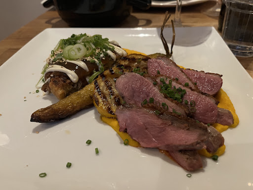Food was great, environment too. Staff is really friendly and welcoming. Menu is a bit limited in matter of main dishes but I guess that’s normal during this times of Corona. The focused meals on other hand were great. The combination of fish with burn butter... who can really say no to this? 🤤 Wine selection is very good as well. Only drawback is the time it took us to get our main dishes, but it felt like misunderstanding on our side, therefore my score is 5 of 5. Would love to...