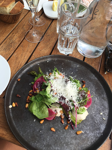 Read moreRestaurangen ligger fördelaktigt vid vattenbrynet och serverar högklassig mat med en utsikt. Maten som serveras lockar flera sinnen i detta och upplevelsen skulle kunna nå sin topp om det inte vore för flera faktorer. Restaurangen är byggd med fördel vid vattnet och kanske därav priserna upp emot nästan 400:- för en huvudrätt. Absolut är maten riktigt bra men tyvärr upplever vi att flera av de anställda upplevs oerfarna vilket resulterar i att jag får ut en rätt med pastrami istället för råbiff då jag specifikt frågat servitrisen just om rätten är en råbiff. Tyvärr är servitrisen osäker och spiller ut vin utanför glaset. Jag tittar och ler åt henne när jag säger "det gör inget" men blir lite förvånad när hon strax därefter inte kommer tillbaka för att torka upp det utspillda vinet utan går vidare till bordet bredvid. Restaurangen är däremot snabba på att servera mig en annan förrätt. Utövar maten så tar lokalen för många gäster att ljudvolymen inne i restaurangen snabbt höjs och med detta skrammel från det öppna köket, i anknytning till gästerna, med en bar mitt emot. Priserna på maten är väl tilltagande och tyvärr är priserna aningen för höga utifrån att servicen inte riktigt upplevs hålla måttet. Tycker lite synd om servitrisen jag upplever ny och oerfaren men upplever samtidigt att priset inte går i fas...
