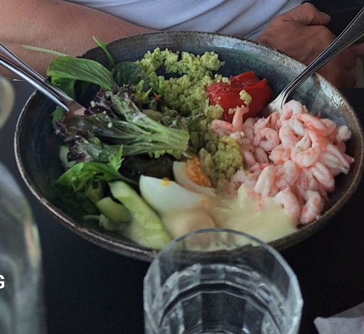 Read moreHunden får följa med in vilket är ett stort plus för oss. Vi beställde en räksallad som var mycket fräsch och generöst med räkor. Mättande med bulgur till. Dock en aning smaklöst. Lite mer mod med kryddor och syra i bulguren så blir det toppbetyg. Även citronmajonnäsen saknade något i smak. Men helt okej lunch. Lokalen känns luftig och trivsam. Går även sitta vid bord ute på brygga på vattnet Stort sett en väldigt...