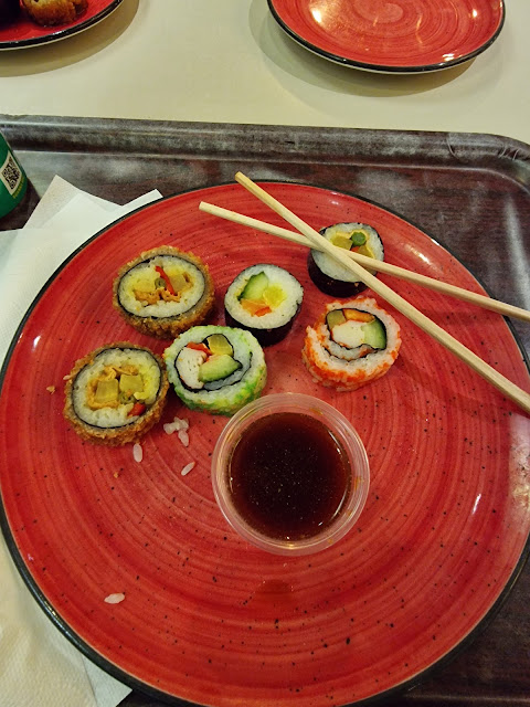 When we arrived, we were greeted by a young waitress. She was nice but we had to make her smile. We got a tray and got two plates from the waitress. I asked if we get new ones every time we finish a plate and we were informed that no, we out more food on the same plate. We chose nice seating on sofas which was very cosy. The whole atmosphere was nice and comfortable. When we went to get our food there was a good selection of sushi and other meals. However, I can make better sushi at home and I'm not even Asian. The soy sauce was watered down and the wasabi was more like a thick sauce than a paste. The other food was ok, nothing special. Rice was dry! The also had fried dumplings. Why would you fry something so delicious as a dumpling, my mind was blown. After the main course I wanted a dessert. It was some rice and beans in jelly which was ok but for westerner inedible after 2 spoons. The restaurant needs to offer wider variety of desserts. The last drop was when we saw the owner (presumably) having a 'monolog' with the waitress whom seemed to be so uncomfortable. He was talking to her at the cash register and it looked like he was lecturing her. I had a boss like that once and never again! For all those stated negative reasons, we won't be...