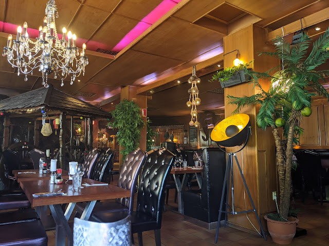 Lets talk about the interior. I'm not a fan of plastic plants, but they also have quite a few giant wood pieces that still makes the place cozy. The entrance cave was highly appreciated by our 4 year...