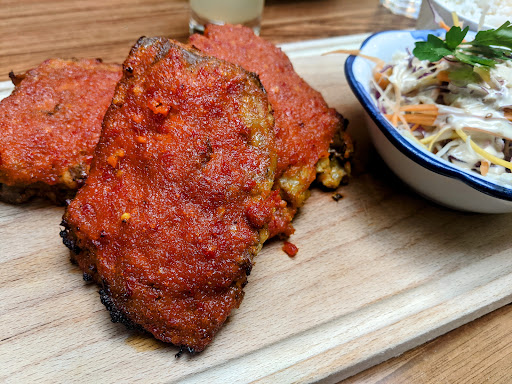 Read moreHad the rice paper rolls with prawns as a starter and the banana leaf salmon for the main course. Everything was great, and you can taste a hint of lemongrass in everything, including the black rice, served with the salmon. Good selection of bottle and tap beers. Didn't see any wines though. Tip: they do take reservations for inside the restaurant, but that isn't mentioned anywhere on Google or their website. So call them to reserve a spot for your party. Patio is nice both in the front and in the courtyard, but it can get a little chilly in the evenings. There are no heat lamps, so bring a sweater/jacket if...