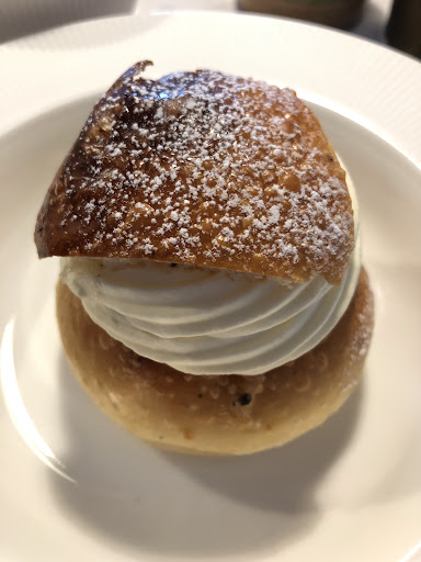 This place has been somewhat of a white wale. I tried before the pandemic to get in and take some pictures but the place was always (when I had time) full. I was lucky to get a place this time since there is often a line of people outside waiting. Maybe its timing or new covid restrictions, anyway Im very happy to get a chance to sit down in here. Bought both bread and other goodies here several times and its great. I mean really good! Some of the staff is sometimes a bit... not exactly unfriendly but not pleasant either. Maybe overworked? Some are very nice however, not a general statement, but I have had some strange interactions here. Anyway its a small place with just a couple of places to sit inside and outside. Great decor, they really did the best with the small space that was available. Also, great coffee! Would strongly recommend to anybody who wants to check out Malmös café culture, top quality...