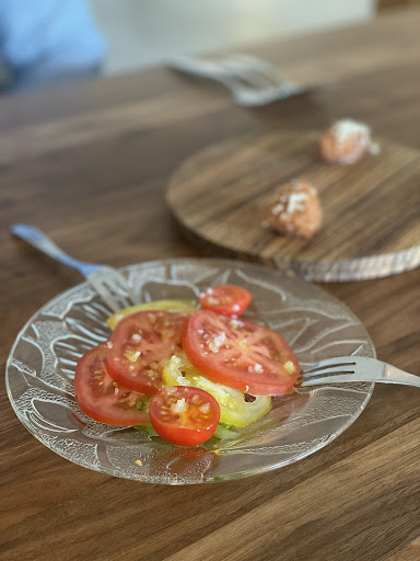 As for the food: heavy on salt, light on flavor, and just no coherence. The tomato starter and fried meat were aggressively salty. The first course, just white asparagus with some sauce, was saved only by the bread. The swordfish with lentils and lobster foam was a confusing, fatty, and dry mess. Couldn’t finish it, even though portions were small to begin with. The beef dish was fine (chewy) but forgettable. The cheese “cake” course was, frankly, repulsive - a blob of French cheese covered in fatty, meat-flavored jelly with meringue underneath. “Dessert” was a soupy, gelatinous concoction of rhubarb and cream with unidentifiable flowers and textures.