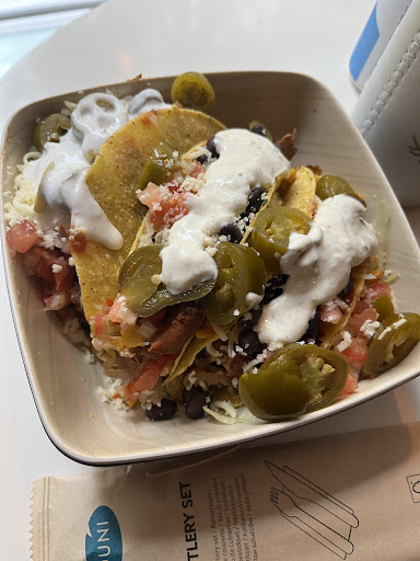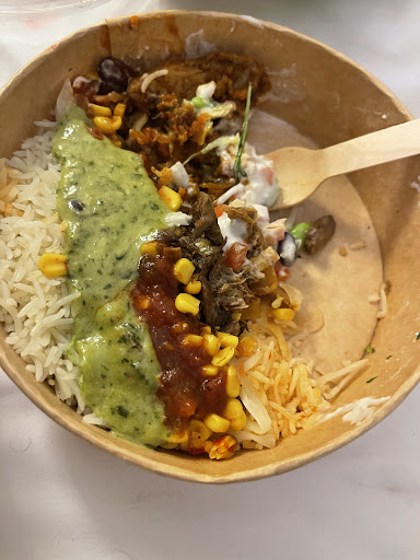 Read moreIf you are looking for a Mexican or even Tex-Mex eatery.....look elsewhere. If you are looking for a falafelroll style burrito then this is your place! I ordered a burrito: The tortilla- it is like a sweet crepé, the taste doesn’t even attempt to mimick a flour tortilla. The insides-rice is long grain white rice mixed with a spicy sauce with no flavor. The other options are ingredients such as the pizza salad, corn, other salad, cold black beans, garbanzos ....I don’t know for some reason orange slices....they do have pico de Gallo, but it was all finely chopped that it had no flavor. The sauces- you will not find salsa here. Mango sauce, check. Garlic sauce, check.