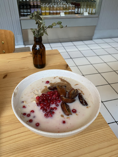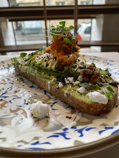 Read more4+ stars for this very calm neighborhood cafe, specializing in “breakfast all day long”. The bright interior is perfect for long hours sitting alone or in good company, reading, chatting or working. My bowl of porridge was really delicious and my cappuccino was also really good. I just think that the price (at least for the porridge) is too high (70-80 sek, approximately 8 $ with today’s exchange rate) hence the 4 stars. Maybe it would be better to have a breakfast package from opening until 10:30, as it can easily become expensive and there other equally fantastic cafes nearby. It is a vegetarian/vegan cafe and it is also pet friendly! The staff seemed really nice...