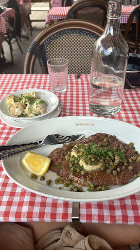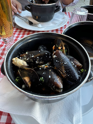 Många små bord som står tätt, men ändå en mysig och familjär stämning och uppmärksam och trevlig personal. Mycket fransk känsla. 🇫🇷