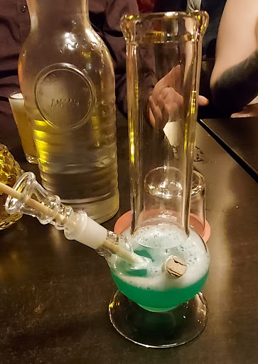 Lets start with the good. The décor is great, perfect ambiance and lots of nice little details that make it unique. The drinks range from decent to unimpressive. I liked the themed names and special cocktail glasses. It brought joy to my eyes if not my taste buds. Also for that price I think the drinks should have been bigger (not only more juice I men also with more of everything). Friends ordered shared absint fountain but apparently they only had one absint spoon in the entire bar so they had to whait for one another to finish and then the staff collected the spoon for another customer. Then we have arrived at the "flatbread bonanza" 250kr for a mediocre pizza, some air dried meat and a small sallad and potato chips. We were a big company and was told that it was a sharing experience. After eating what little we got and paying I realized that we had gotten one less plate of flatbread then we ordered. What is most provoking about this is that I think the staff knew because the looked at ous nervously and asked if we were feeling full as we were leaving. I said nothing at the time because I was pretty fed up with the place by then and wanted to leave. They had no moral qualms with charging us anyway (so 500kr to much) and since we left on different times they charged my friend with an extra drink saying we hadn't paid (we later cheked and they must have made a mistake). The staff was friendly but either understaffed, badly organised or not trained properly. So would I recommend an experience where they overcharged us with 645kr? No, but it...