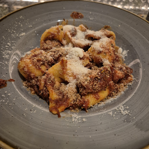 I ordered the Pesto Verde pasta. Instead of the dish listed on the menu and seen in other reviews, I received linguine, not fussilione, with baby spinach, olive oil, and cheese. No green beans, no pesto. That said, the pasta was serviceable al dente, the spinach fresh, and the dish acceptable for a hungry diner, though there was something that appeared to be part of a toothpick in it.