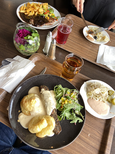 Nice and friendly staff who also took care of placement in regardsto Covid-19 - nice. Food needs improvement though. Schnitzel way to dry, too small and no sign of breading as it should. Pancakes probably not homemade and floating in butter. Fish just nothing we recommend only tasted breading not fish. Pasta Bolognese just got an eatable verdict from son. Salad buffet ok for lunch but nothing special... out of bread or baguette at time we are lunch. If just for food it is...
