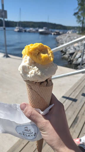 Read moreNär jag kom dit så var det en jättefin plats med havet och det fanns jättefina lägenheter och hus. Inne i Kennys Gelato så var det litet och trångt dock. Jag beställde AIK-glass som verkade bra men stämde inte beskrivningen. Glassen smakade inte så gott utan det smaka bara för det mesta dels banan. Och det stod att det skulle ha guld strössel men fick inget av det. Sedan så beställde jag nutella och hasselnöt crunch men även det smakade inte så jättegott. Visst så smakade det lite choklad och bitarna var goda men även det smakade banan. Anledningen till att båda smakade banan även om typ inget av det hade banan i sig var för att när jag skulle betala för glassen så smälte det direkt. Alltså efter en minut så började det smälta och komma över hela bägaren så jag fick ta massor av papper eftersom det kom smält glass överallt. Det var inte ens soligt, utan det var kallt och blåsigt, undrar hur det under en solig dag om det smälter när det är 15 grader och blåser kallt. Min kompis beställde i strut och det smälte inte men hon tyckte det inte smaka så gott heller. Om vi skulle jämföra med Jam Jam tex som inte är hemmagjort men det skulle jag faktiskt säga är godare och det smälter inte fort. Jag kan gå runt rätt så länge och det har fortfarande inte smält medans i Kennys Gelato så smälte det direkt. Skulle ändå säga att det är rätt så bra för att vara hemmagjort. Men om jag ska sammanfatta min upplevelse hur det var i Kennys Gelato så var det inte så bra...