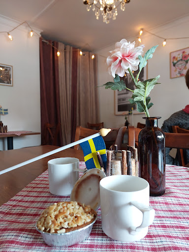 Our last morning in Sweden we were finally in Sigtuna late enough in the morning for this café to open. Each evening as we reached Sigtuna, and each morning before we left, we walked by the place, admiring its lovely garden tables as well as the pretty pink building with its front windows looking out over Lake Malaren. We were so excited to see the doors open that we stopped in, despite having already breakfasted elsewhere. Being mostly full, we decided to share some pies before heading off to the airport to catch our flight. Raz’s Rhubarb pie with its crumble top was tart, tangy, and he loved it. I would not have been able to take a bite were it not for the sweet Crème Anglaise that was drizzled over the top and pooled at the side of the pie. My own warm Hazelnut pie was served with a side of something halfway between whipped cream and ice cream that was decadent and full of kick-you-in-the-teeth Madagascar vanilla. I had never tried a Hazelnut pie before. The texture is similar to pecan, but it has that unmistakable hazelnut flavor that is slightly exotic for an indescribable reason. I definitely recommend this place for its pies, and should we ever have opportunity to stay in Sigtuna again, we will endeavor to stop here for lunch, which is...