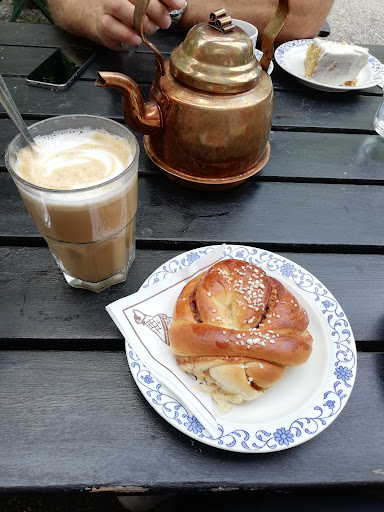 I met a local while walking around the lake and she recommended me to visit this place as a "must do" in Sigtuna. She told me about the old building (from 17th century, the only interesting thing to know) the cozy atmosphere and the chimney with wood burning. I arrived there after a walk with 8ºC outside to find out that the fire place was not burning, so not that cozy feeling and the room is very dark. Not comfy chairs, at least a cushions could be nice to have. Besides that, I decided to stay since I made all the way there. I ordered an overpriced cappuccino and a "Sigtuna donut". Nothing special. On the way to the toilet I found out that they have an automatic coffee machine, not a barista preparing the coffee you ordered. I felt disappointed in this...