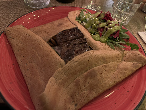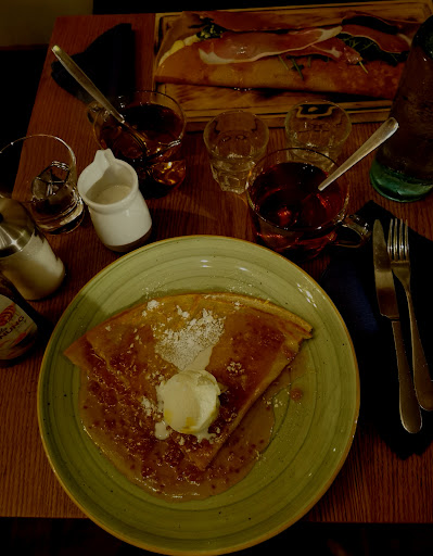 Clearly good crêpes/galettes and for my french people reading this: c’est pas du niveau de ce qu’on peut trouver en France, les plats sont vraiment revisités. La galette n’as pas le goût d’une vraie galette sarrasin, et côté dessert il n’y avait pas de crème de marron. J’ai pris une galette complète (la normale car ils en ont une autre avec de la moutarde de Dijon mdr) et ce n’est pas du jambon classique mais plutôt un genre de bacon, idem l’œuf n’est pas au plat classique mais limite je ne me rappelle pas s’il y avait le jaune, et le fromage utilisé était trop fort ce n’était ps de l’emmental. Donc je pense qu’ils font avec les produits locaux et non français et essayent de revisiter pour une clientèle non française. Pour ma part j’aime la simplicité et je m’attendais à ce que je peux trouver dans une bonne crêperie en France. Ça reste bon donc je veux pas basher l’endroit et le staff était sympa mais c’est pas le goût que je...