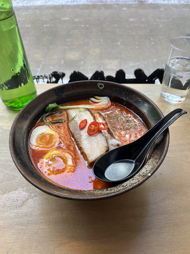 Read moreCosy atmosphere and a potential great Ramen shop/place. But the experience was mediocre to say the least. Me and 4 friends had to wait in total 30 minutes for a table (drop in) and + 40-50 min for the actual serving of the food. The bartender was nonchalant by not being able to serve or recommend a non alcoholic cocktail to my friend. While ordering another friend wanted suggestions for pairing the food with drink, and the service couldn't answer what type of miso were used (did he even know what miso was?!) Or flavour Profile in the dish to get a since of what works or what not. The food for my meat eating friends were good by their standard. My vegan option was bland, lack umami and the mushrooms were undercooked. Also the marinated tofu was raw and cold. Unfortunately I think Ramen only works as a concept when doing it exactly like in Japan or Ivan Ramen in NYC (the latter is the concept copied by Ai Ramen) but then you'll have to know what you're serving. Serve it faster, because it's fast food or simplify it like the shops I've visited in Osaka were they serve one(!) Soup and one that is delicious. You get 2 stars for the potential. But you give me a sense that Ramen in this country only gonna be a...
