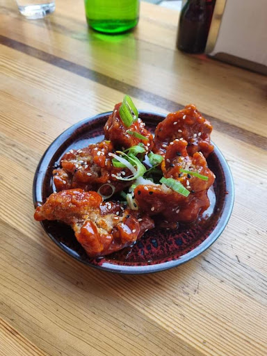 Ai offers local beers on the tap and imported bottled beers from Japan. The star amongst these is the Japanese Nest Beer Red Rice Ale- a red sparkly ale blended lightly with sake. The bouquet is fresh, fruity with the aroma of jasmine rice. It went fabulously well with the sticky rich, slightly sweet hot sauce fried chicken.