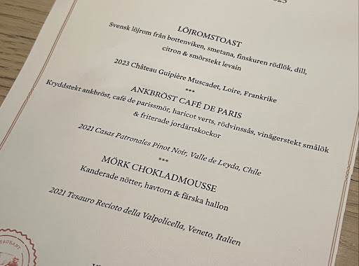 SERVICE: Service was thoughtful and pleasant, if a bit difficult to get the attention of at times. The headwaiter was on his toes, constantly filling in where needed. As with most places in Sweden, even if you decline dessert you'll still need to ask to have your check brought.