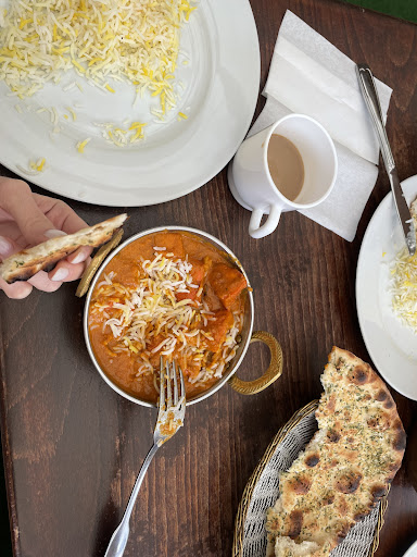 Vi åt två olika men vanliga kycklingrätter en vardag kl 19, med varsit nanbröd och sallad till. Vi föredrar vatten, inklusive lite driks blev det 440 kr. Maten kom in på serveringsfat, men maten hade även räckt till ett barn till, vi var väldigt mätta efter.
