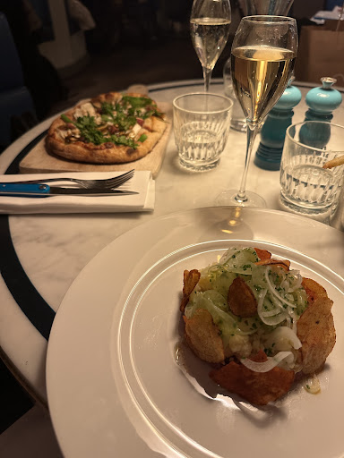 To start this review, we had booked a table for 12 to celebrate our friend's birthday in a good restaurant. Stockholm, being a very beautiful/rich city, we trust the restaurant. We arrive on the spot and, first surprise, they place us on 2 round tables of 6, so we were not together. For a convivial moment it's not great. Second point, the service. I lay the bases, 17⏠the glass of wine ok no worries, but, when the waiter/waitress, spills some wine on the table without coming back to clean, well. I'm not asking for the moon, just a minimum of training, especially in this kind of restaurant at an average price of 40-50âŹ. Nevertheless, the quality of the food is there, at the level of the ingredients and it is well seasoned. Small negative point, the quantity is a little thin but correct. My conclusion, if you are looking for a good meal, without looking at the...