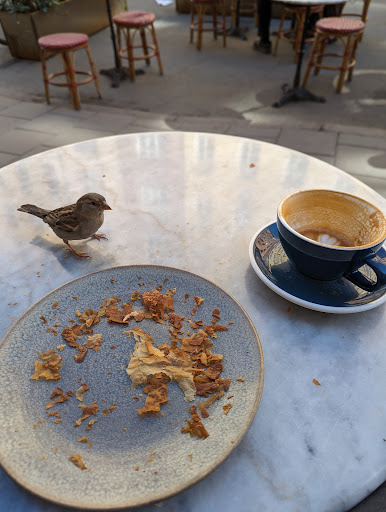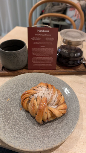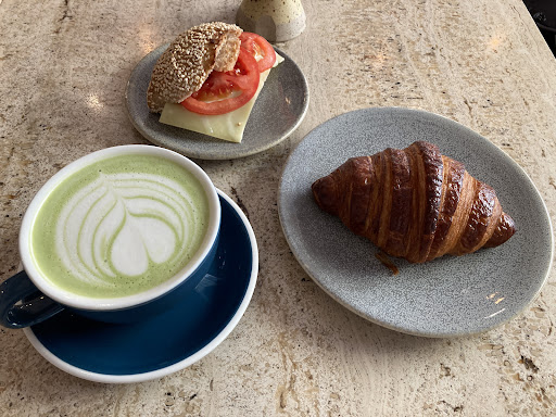 A lovely bakery/ cafe. They have plenty of seats inside and outside. As well as the usual single- bite pastries, they seem to have a lot of family-size loaves to take home. They open at 8:00 AM on Saturdays. It's one of the only cafes open early in this area. I arrived shortly after 8 and there were already a few people waiting in the queue. I had a matcha latte. They didn't have chai latte, but they had chai tea (presumably in teabags). It looks as though matcha latte is more common than chai latte in Stockholm. I had a croissant on and a cheese and tomato sandwich. They were both very good. Overall, very smooth and pleasant experience. I saw a few customers with babies and/ or dogs, which should be a good indicator of how comfortable and welcoming...