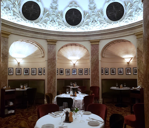 The interior is a most elegant design, as it is part of the Royal Opera House. It used to be an exclusive lounge for the performing opera singers, musicians and other artists. Not anymore. For the past several years it is open to the public as a restaurant. Large terracotta-framed mirrors, gilded columns and pilasters, beautiful ceiling fixtures dominate the interior.
