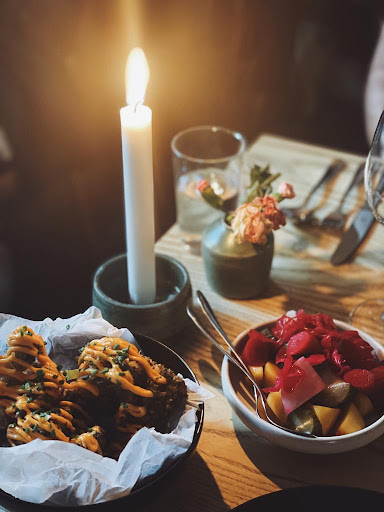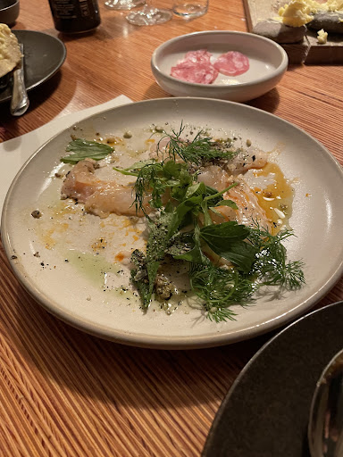 The appetizer was good, but it was very little for the price, it was three balls of cheese and meat that were fried and had a sauce with them, which I believe cost 265. However the entrée was basically only a slab of meat, of which 30% was just a huge fat rind that I can't imagine anyone would willingly eat. The meat was extremely tough (although it looked perfectly cooked, medium rare), and pretty fatty -though I will say the flavor itself was really good. The dish was only that piece if meat + one tomato cut into pieces, and some fries. Fries do not scream expensive to me, and neither did the bad piece of meat, but that cost almost 400kr. Absolutely ridiculous price for the small amount of food and poor quality of the meat. And this goes for both me and my boyfriend, as we ordered the same thing; we both got tough meat with way too much fat on it. We decided to pass up on dessert after that. The location did not look nice on the inside. Random pictures on the wall that did not seem to have any relation to the place (a picture of a scene from pulp fiction, I believe, a picture of Ghostface, some other random pictures.. most walls were huge mirrors, which just doesn't feel good? Lots of cables along the ceiling, and terribly ugly lamps, I could go on.. The mood among other guests was good, so that helped. But we were not happy. The only good thing was that the waiters checked on us...