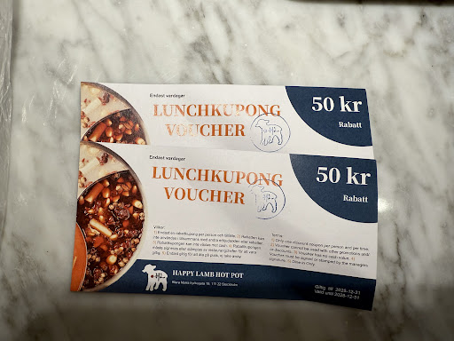 Read moreHappy Lamb Hot Pot in Stockholm is a fantastic spot for anyone craving authentic and flavorful hot pot. Located in the city center, itâs a cozy and inviting place that offers a warm, communal dining experience, perfect for groups of friends or family.