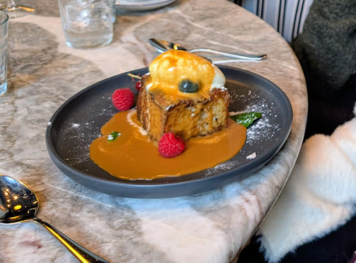 Read moreFood was mostly good, but overpriced. The suvlaki was super heavily seasoned and a wee tough, the foccacia was nice and fluffy tho. Portions are way too small for such prices. The cocktails were amazing, I'd definitely recommend the Juno Sour. The service was friendly, but when we asked for a chocolate moose, we got a check lol; that just goes to show that it was very loud and lively there, one should come with friends, order the small starters and enjoy the big wine list or...