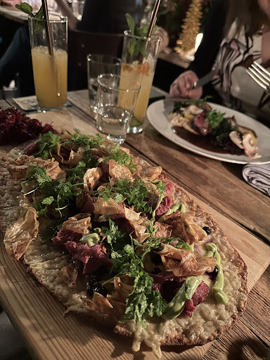 Read moreA combo of tradition and creation, this place offers wild meat with a modern touch. The food portions were generous, we barely finished our mains after the starters. The cold cuts preserved the aroma of different types of wild meats, and removed the odor perfectly. Each meat offered different texture and flavor, and the blackberry chutney neutralized the heaviness of the meats. The creative pizza was a pleasant surprise. The moose meat matched perfectly with thyme mayonnaise, and the texture was crunch with the thin pizza dough. Together with Västerbotten cheese and berries, this dish brought new experiences to traditional Nordic flavors. The improvement could be done at this place is that the service was very slow. We waited for more than half an hour to get the starters, and another half an hour to get the mains. Also the tables were too close to each other, we have to excuse our neighbor table to make any movement...