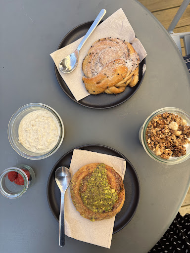 Read moreI absolutely loved this café! We stopped by for a breakfast and got overnight oats, yoghurt, pastry and coffee. The pistaccio bun was divine, absolutely amazing. We liked it so much that we ended up coming later again to by some snacks for later - I got a sandwich and vanilla bun. We came around 12:00 and it was almost sold out. The overnight oats were good with a generous portion of high quality PB. Unfortunately, the berries were too old and had some mould on. The overall menu is simple, so do not expect brunch place with a wide selection of dishes. They have a bathroom in the back and nice seating area outside. I can imagine this to my go to place if I lived...