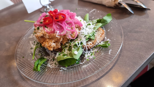 Read moreOrdered the Scrambled plate with scrambled eggs on a toast, avokado. Extra Bacon & smoked salmon, black coffee and some banana bread.