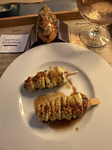 Read moreThis place was recommended for me to go to during my trip to Stockholm. I was also excited to see that it was a Bib Gourmand restaurant… but unfortunately this place did not live up to the expectations. I reserved a seating as a solo diner. When I arrived I was seated at the bar, but it was a part of the bar where it was basically just me. There was one couple on one side of me, separated by an empty seat and on the other side there were four empty seats. Which would have been fine, except the service was terrible. It took at least 10 minutes before the bartender even acknowledged my existence and talked to me about the menu (that’s on this wooden board). She mentioned an additional wine menu and I asked for that. Another 15 minutes goes by before she came back. In the meantime there is another person behind the bar offering other people bread, but she stops before she gets to me and just smiles. I was confused why I wasn’t offered bread and asked when the bartender finally got back to me. She said that you only get bread after you order (mind you they put butter in front of you in the first interaction, before you order). She handed me bread after I ordered, about 25 minutes after I sat down. She also forgot to hand me the additional wine list, and I had to ask for it again. It was such a weird experience to have as a solo diner who’s sitting on the side of the bar with very few other people. Last issue with the service was that I was give a wet napkin with one of the first dishes that came out. I used it and the ripped wrapper stayed next to me the entire meal (usually that would be picked up after the dish is finished, but not with this restaurant). Then there’s the food. It was fine, but not at the level I expected. There was only one dish, of the four that I ordered, that rose to the occasion… it was the Swedish pork skewers. All in all, I wouldn’t recommend this place, especially if you’re a solo diner. You can get better food and service at other places...