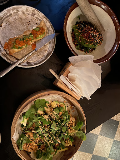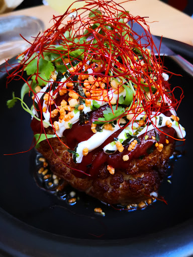 We ordered eight dishes for dinner. Grilled Iberico. It was amazing. Perfectly charred around the edges and very tender. The salsa dip was refreshing and it has a depth of subtle flavors. Foie gras. Melts in your mouth. The shredded cabbage has a very fresh and interesting taste. Love the combination. The only complaint I have is that the toast was a little bit too greasy to my taste, but my husband loves this dish very much. Rice. Perfectly cooked sushi rice. Went really well with the other dishes. Also good on its own. Sugar snaps. I enjoyed it. My husband did not think it was spectacular. guacamasshu. The rice paper is kind of cool. Crunchy and airy. But I think the seasoning was way too salty. We think our homemade guacamole is actually better. Turbot taco. Balanced and mild flavors. Fresh and high quality ingredients. It was good but a bit too plain to our taste. Steamed vegetables. Fresh and good selection of vegetables, steamed to perfection. But I think the sauce is a bit too fattily creamy. I personally would prefer a clear sauce with more refreshing flavor. Duck Gyoza. We were disappointed with one. It did not taste like duck and the meat was on the dry side. The dipping sauce is on the salty side.