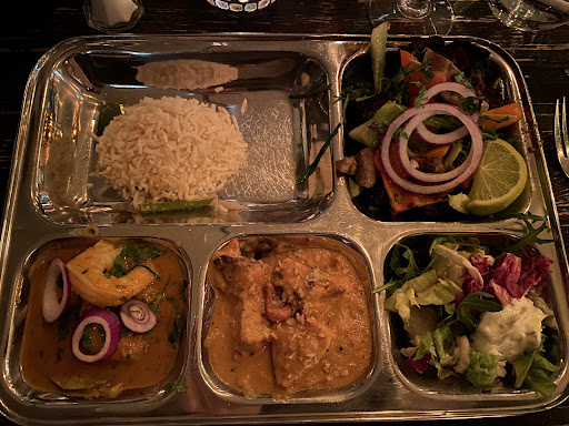 The hasher josh was really good, reminded me a bit of indonesian duck, very tender and great spices. The nihari gost was very tender too, no wonder, if it’s cooked for 5 hrs 😆 I had the mixed thali, and at first I thought it looked a bit small as a portion, but it was enough. The shrimp sauce was very nice, but the shrimps were just ok. The lamb was awesome, but the menu said it were 3 stews and it was ‘just’ a lamb chop. The Balti chicken was nice too. The naan was good, pretty fluffy, not the best we know.