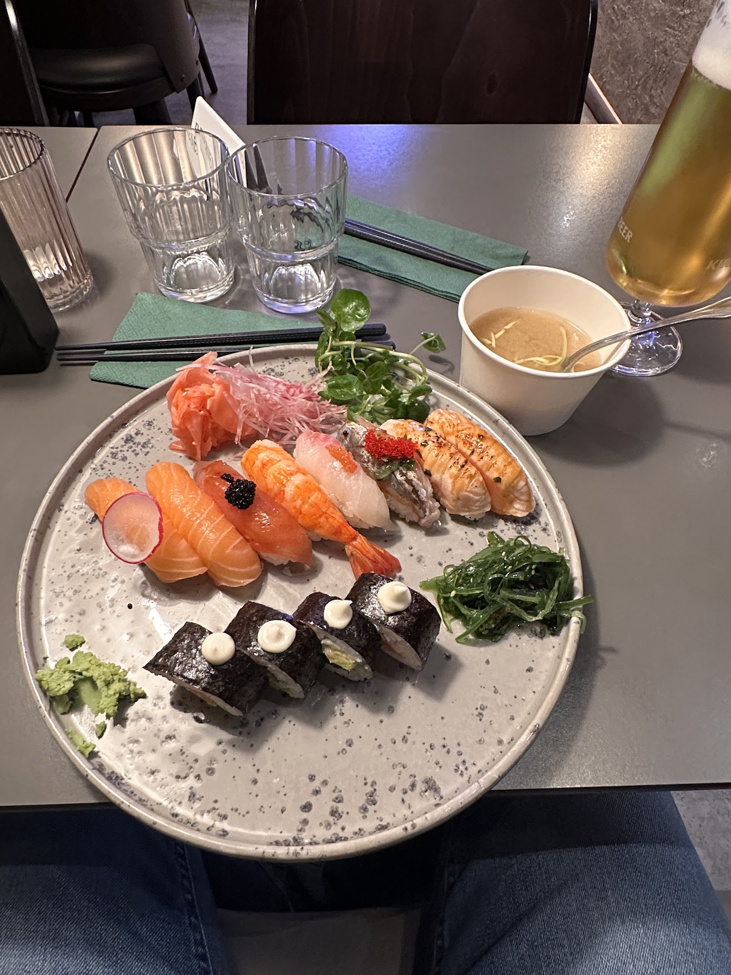 Not sure what the hype is about. The nigiris are decent even if a bit blant, but that is probably the point of their concept „naked fish”. On the makis they put some mayonaise. Why? What is next? Ketchup? The radish smelled with mold - must have been cut in the morning or the day before and kept in water all the time. arrived 33 minutes before closing (21:00) and was warned that they are closing soon. Then, 20 minutes before closing they started taking out the trash and switching off lights. 13 minutes before closing i was told they will close in 5 minutes and basically made to drink up and leave. I don’t think this is japaneese hospitality and neither is it swedish. At most restaurants closing is when they don’t let any more customers in. Here apparently it’s when the personell wants to already be in bed....