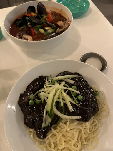 The black bean paste tasted like it had been blended with water and simply boiled in a big pot, which really missed the mark. It needs to be sautĂ©ed for better flavor (with vegetables). Additionally, the noodles were cold and tangled. I understand the need for quick service, but thereâs a way to balance efficiency with quality. A quick rinse (with cold water) after boiling them al dente and then a brief boil before serving could be an option. Also it felt like the chef forgot to put some more ingredients.