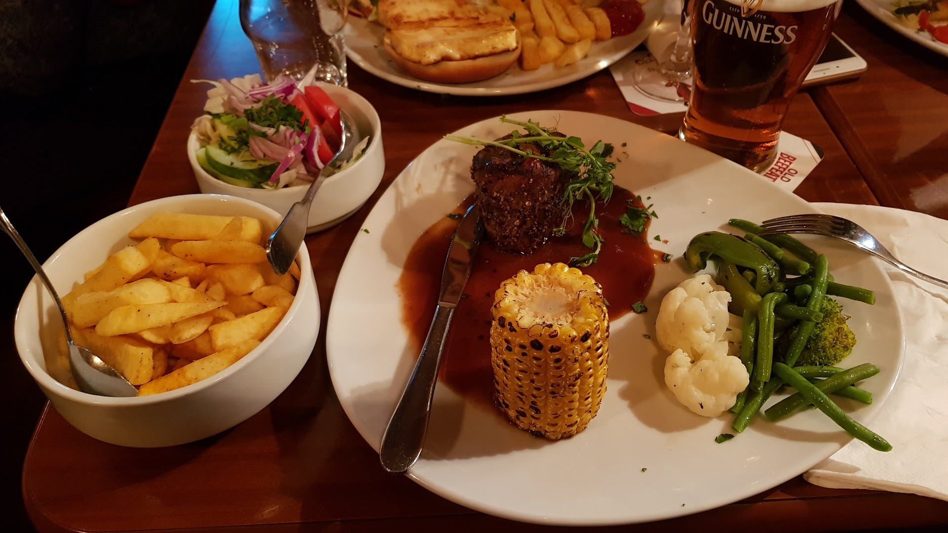 Read moreA good place if you want to drink beer. But if you want food - AVOID THIS PLACE! The meals are heavily over-priced and all of them DRENCHED in oil. The fish and chips were a joke - one tiny piece of fried fish, and a very small salad in the corner. And the burger was poorly made with tasteless toppings of bad quality. Very big boring and dry hamburger bun. Do NOT order the garlic bread - it felt like it was dipped in frying oil, had a grey-ish color from the steak pan and you could even taste the metal from the steak pan - gross. And as I said very over priced for the horrible quality of food. Will NEVER order food again here. The service was OK, tired and...