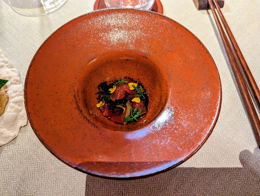 Read moreSuch a special place. We visited for my father's birthday. We were all very impressed and really appreciated the opportunity to experience such flavourful and carefully prepared food in the very private and cosy atmosphere that this restaurant creates. The ambiance feels almost like a private dining club, with minimalist, but elegant, decor and carefully curated lighting. The staff went above and beyond to make us feel welcome and were very informative about both the food and the wine. Furthermore, the owner and chef, Petter, came out to present and explain all the main courses in detail (we had the choice menu). The restaurant staff also paid a lot of attention to any dietary needs (we were one vegetarian and lactose free), which was much appreciated. The wine list was extensive, but with a focus on small producers creating complex, but perfectly balanced wines. We enjoyed all three (wines) that we tried. The additional touch of seating us at the owners old family table and serving one of the courses on what was apparently his family's special occasion crockery further deepened the personal touch and thoughtfulness this...