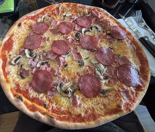 Read moreThe prices are by the minimum a bit higher than on google shown. Although the pizza! It’s so huge (as minimum 35/40cm in diameter) and it’s also good. Would say definitely worth the price if not more. There’s also other types of food as saw for other people and that also looked very well made. You do indeed order and pay yourself but after everything is brought to you. The place also has a lovely atmosphere. Bit of a sports bar vibe (with TVs around without the sound), chill music and candles everywhere. Do...