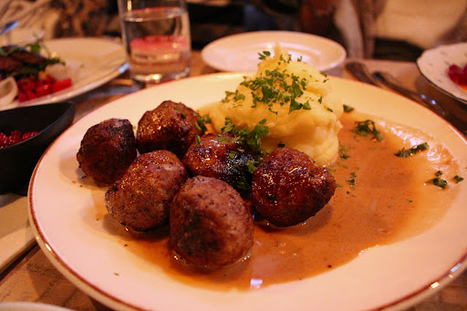 The Swedish Meatballs (215 SEK) were fairly large in size and were covered with a delicious gravy creme sauce. The lingon berries and pickled cucumber added a bright splash of flavour and the potato purée was good.