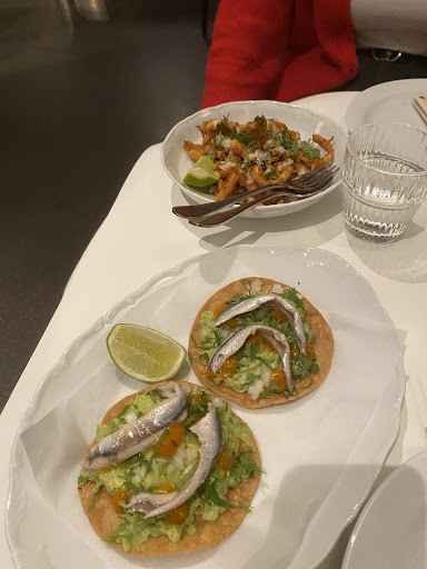 For drinks there is a wide range of wines to choose from, with labels from all over the world, however, with a focus in wines from the Mediterranean coast. I had a glass of Assyrtiko which went especially nice along with the calamari’s and tostadas, making me feel like I was sitting in a seaside somewhere!