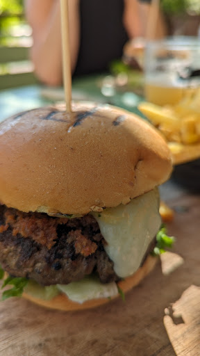 Normally my wife and I do not eat at the hotel restaurant, but because of our travel schedule, we had little choice... I explain this, so you know where our expectations were at walking into Bjork. It was Sunday mid afternoon of the Midsummer long weekend and the restaurant proper was closed, they only had the Bar's menu, so we each had the Burger... I cannot overstate how surprised we were! This was possibly one of the best burgers we've ever had! Excellent patty, perfectly cooked with a nice balance of veggies, a nice thick cut of provolone cheese, and just the right amount of caramelized onions and chimichurri mayonnaise... Truly excellent. So, if you happen to stay at the Courtyard by Marriott hotel don't miss out on sitting on their patio and enjoying a burger and a drink, you will not regret it! Nicely...