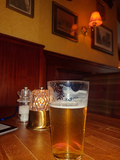 When we arrived, no one greeted us at the entrance, so we just took a vacant table. Still without anyone approaching us five minutes later, I drew the attention of a member of the pub staff for a menu. We ordered drinks and two meals. The drinks came quickly, but after 20 minutes with no food, another server came by to ask if we had also ordered food (we were ready with cutlery in front of us); apparently no meal order had been registered. We placed the same order again, and after some time one meal was served. When I asked about the second one, I was told only one had been ordered. So, I ordered again, and another meal was finally served some time later.