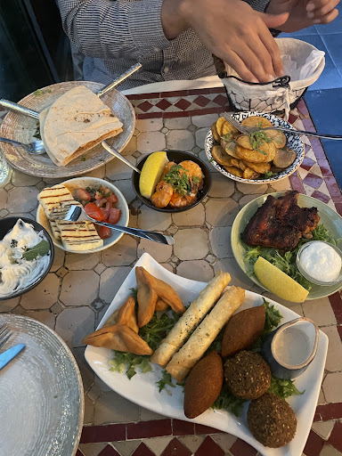 Nice quiet location in a side street with outdoor seating in a cute, almost romantic open backyard. We tried the Tasting Menu for 2 people which was really excellent (with one exception), and plenty it was! It barely fit on our small table. And it was even enough for a filling lunch the next day. Worth the price! The service was really friendly, however unfortunately at times it was hard to get their attention and we had to wait quite long to get any food, with at least three couples being served theirs despite having arrived and ordered after us. I wish they had brought out some of the delicious Hummus and their brilliant Tabbouli and whatnot as starters a bit earlier which would have made this a non-issue, on top of solving the space problem when we got served all of these delicious little plates in the space of like five minutes. As for the food, most was brilliant. If you like meat, take the more expensive non-veg taster, their lamb chops are not to be missed! The minced lamb rolls OTOH were a bit uneven and thus still raw in places so we had them for lunch the next day after a proper frying. What I can't fathom is the complete letdown that was the "grilled" chicken breast; it tasted like one of those pre-cooked (from frozen meat?) things that you often get on those prepackaged so-called "Caesar's" salads. Odd texture. Must have barely touched the grill, if at all. Not worthy of being part of this tasting menu. Not sure what went wrong there. That and the unnecessary wait dragged it down to 4 stars from an...