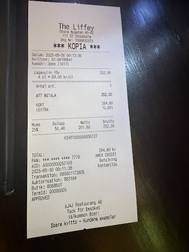 Read moreThe bar itself is probably fine for most people, I'm handing out a 2 star mostly because of the way the bar cash register assumed tip from 5 % and upwards. There was a hard-to-find, partially obscured button that said no tip at the bottom, deviating from the look of the more clickable ones. You had to select one to be able to pay.