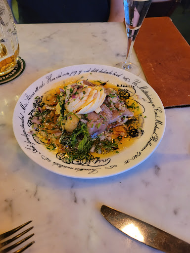 Hade sett detta ställe av en slump, hade fått bra betyg så gav intresse till att testa direkt. Något nytt dessutom då jag inte är familjär med smörrebröd. Kom in genom dörren, märkte att stället var litet men inget fel med det. Borden sitter lika nära varandra här som på större restauranger med fler bord. Vi fick börja sitta vid ett bord nära dörren, hann inte komma längre än till beställning innan vi fick frågan av en i personalen om att byta bord (stort sällskap som trängdes i ett hörn) och vi hade inga problem med det.