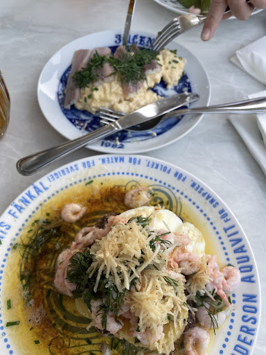 Read moreLast time I was here I wasn’t too satisfied (had some kind of fried fish with curry sauce) but this time around I really understood the hype of this place. I had the butter shrimp and the eel, and my god the butter shrimp was so delicious that I honestly couldn’t stop munching this done until nothing was left. The eel was also just so good, creamy scrambled eggs that accentuated the simple and bold flavors of the eel. I think this really is the peak of Nordic cuisine: because I agree, there aren’t a lot of spices in this, and in most cases that is a very disappointing experience, but once you get those incredible ingredients and things cooked to perfection, it becomes a bit similar to Japanese cooking where you just let the main ingredients and cooking techniques speak for themselves. While having this amazing food, if you’re here in summer, you get this amazing view from a hill of the sky burning into a myriad of warm colors that especially makes that beer...