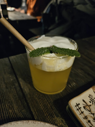 Vi tog bÄda varsin drink till maten. Jag avnjöt en "Yu Zu Fine 16cl", min tjej tog en "Matcha Orgie 10cl".
