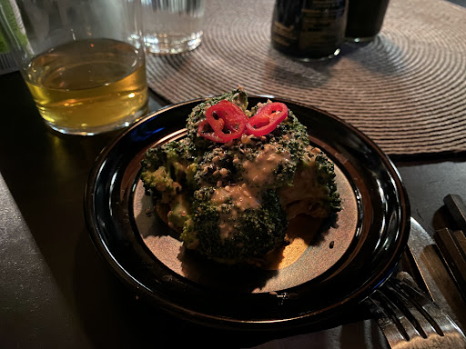 Vid frågan om man kunde få ris till maten fick vi avslag 4 gånger av servitrisen. Servitrisen erbjöd inte heller att vi kunde köpa till en plain onigiri om vi ville ha mer ris. Det tog också 45 minuter att göra min drink. Den var riktigt god men förstod inte riktigt vad i drinken som tog så långt tid. Även om man har bottenlösa fickor är det ändå inte värt att enbart äta här. Det är mer ett ställe för att dricka med sällskap och lite tilltugg.